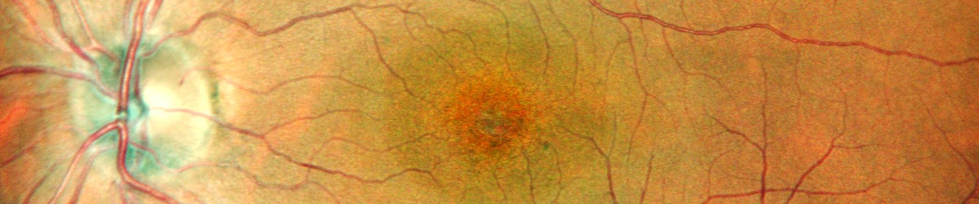 This black and white imaging therefore provides information on the state of health of the pigment epithelium, the layer containing the photoreceptor cells of the retina. A hypersignal (white) shows pain in the pigment epithelium and a hypointense (black) shows atrophy of this tissue.